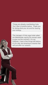 a red background with the words yvonne dolman bp political science an mba business coach, psychologist, mb